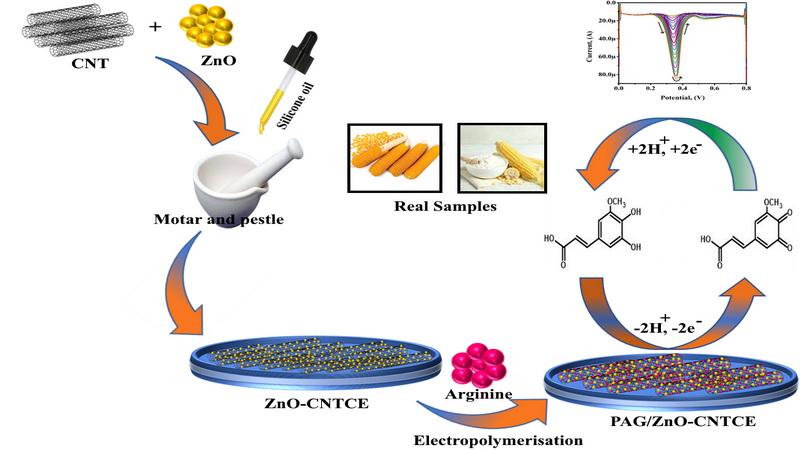 J. Electrochem. Sci. Eng. Vol No 15, No 5 was published Published: 02-09-2025 Bioelectrochemistry Porcine gelatine detection via electrochemical immunosensors utilizing green-synthesized cerium oxide nanoparticles from orange peelOriginal scientific paper Rafa Radithya Swara, Nazwa Alya Zahra, Dea Hasna Tsary, Biyas Aurora Nania Nevada, Elisabeth Nasya Dominika Setyawati Putri, Salma Nur Zakiyyah , Yohanes Susanto Ridwan, Yeni Wahyuni Hartati, Irkham Irkham J. Electrochem. Sci. Eng., Vol. 15 No. 5 (2025), 2698 Published 31-07-2025; DOI: https://doi.org/10.5599/jese.2698 PDF (1,143 kB) Supplementary Material (537 kB) Electroanalytical chemistry An electrochemical sensing platform based on ZnO-nanostructured modified glassy carbon electrode for sensitive hydroxylÂamine detectionOriginal scientific paper Muhammad Abdel Hasan Shallal, Hayfaa A. Mubarak J. Electrochem. Sci. Eng., Vol. 15 No. 5 (2025), 2789 Published 02-08-2025; DOI: https://doi.org/10.5599/jese.2789 PDF (622 kB) Pre-treated pencil graphite modified electrode sensor for melatoninOriginal scientific paper Bindu Pavan Venkatachala, Siddalinganahalli Manjappa, Bahaddurghatta Eshwaraswamy Kumara Swamy, Lambani Shivlanaik Manjunatha J. Electrochem. Sci. Eng., Vol. 15 No. 5 (2025), 2594 Published 14-04-2025; DOI: https://doi.org/10.5599/jese.2594 PDF (777 kB) Covalent attachment of aminoferrocene to pseudo-graphite for selective sensing of H2O2Original scientific paper Forrest Dalbec, Jeremy May, Dipak Koirala, Jhonnathan A. Plascencia , Micheal Okeke, Joshua Russell, Hui Xiong, I. Francis Cheng J. Electrochem. Sci. Eng., Vol. 15 No. 5 (2025), 2705 Published 07-09-2025; DOI: https://doi.org/10.5599/jese.2705 PDF (1,625 kB) Polyarginine decorated zinc oxide carbon nanotube composite sensor for the voltammetric detection of ferulic acid and hydroquinoneOriginal scientific paper Karnayana. P. Moulya, Jamballi G. Manjunatha J. Electrochem. Sci. Eng., Vol. 15 No. 5 (2025), 2711 Published 14-07-2025; DOI: https://doi.org/10.5599/jese.2711 PDF (1,684 kB) Electrochemical investigation of paracetamol at Congo red modified carbon paste electrode: a voltammetric studyOriginal scientific paper Chethan Kuskur, Bahaddurghatta Eshwaraswamy Kumara Swamy J. Electrochem. Sci. Eng., Vol. 15 No. 5 (2025), 2640 Published 19-07-2025; DOI: https://doi.org/10.5599/jese.2640 PDF (836 kB) Ion-imprinted polyaniline-based polymer for selective electrochemical detection of cadmiumOriginal scientific paper Eldhose V. Varghese, Roshny Roy, Carsten Schwandt, Praveen C. Ramamurthy, Alex Joseph J. Electrochem. Sci. Eng., Vol. 15 No. 5 (2025), 2729 Published 29-06-2025; DOI: https://doi.org/10.5599/jese.2729 PDF (904 kB) Corrosion Reinforced concrete corrosion; Mechanism, challenges, prospective, and future roadmapReview paper Aref Shokri J. Electrochem. Sci. Eng., Vol. 15 No. 5 (2025), 2820 Published 16-08-2025; DOI: https://doi.org/10.5599/jese.2820 PDF (937 kB) Original hydrazine carbothioamide Schiff base derivative as a suitable mitigator for corrosion of carbon steel and hydrogen production in acidic aqueous mediaOriginal scientific paper Mahmoud G. A. Saleh, Majda Alfaker, Rasha N. Felaly, Salih S. Al-Juaid, Fatima H. Alabdali, Kamal A. Soliman, Metwally Abdallah, Saleh Abd El Wanees J. Electrochem. Sci. Eng., Vol. 15 No. 5 (2025), 2546 Published 09-07-2025; DOI: https://doi.org/10.5599/jese.2546 PDF (1,484 kB) Synergistic corrosion inhibition and controlled release of ascorbic acid from a layered double hydroxide composite for stainless steelOriginal scientific paper Amal Abdouli, Mohamed Amine Djebbi, Abdesslem Ben Haj Amara J. Electrochem. Sci. Eng., Vol. 15 No. 5 (2025), 2808 Published 07-07-2025; DOI: https://doi.org/10.5599/jese.2808 PDF (1,278 kB) Electrochemical Engineering Challenges and control strategies for disrupting passive oxide layer formation in electrochemical machiningReview paper Ritesh Kumar Upadhyay J. Electrochem. Sci. Eng., Vol. 15 No. 5 (2025), 2796 Published 21-07-2025; DOI: https://doi.org/10.5599/jese.2796 PDF (717 kB)